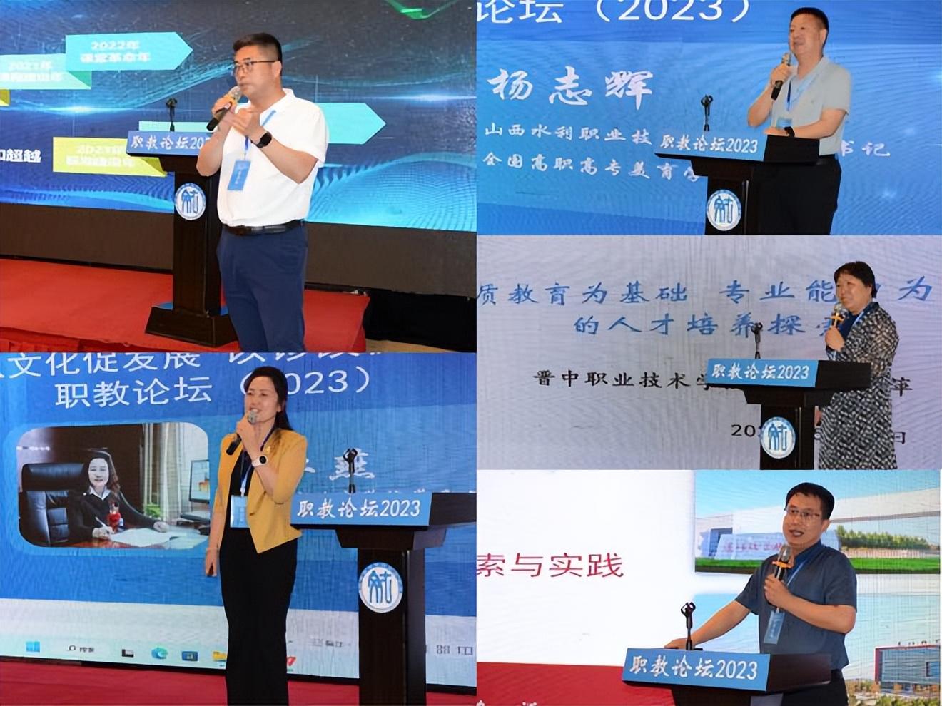院校之声,由平遥现代工程技术学校校长孔庆生、临汾职业技术学院党委书记段江燕、山西水利职业技术学院副书记杨志辉、晋中职业技术学院教科研中心主任魏丽萍、运城职业技术大学副校长畅明分别以“数智赋能,构建学校治理新样态”、“党建引领 两翼支撑 聚力服务 创新管理赋能高质量发展”、“素质教育的感悟与实践”、“素质教育为基础 专业能力为核心的人才培养探索”以及“职业教育‘人文素养’的‘三融合’教学模式的探索与实践”作了主题发言,分享了各院校高水平建设的办学经验、互鉴高效率办学举措。