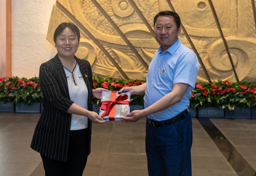 山西青铜博物馆馆长、山西博物院第五党支部书记梁育军对山西财贸职业技术学院文化旅游系党总支一行的到来表示热烈欢迎,并为文化旅游系赠送了三套《山西青铜博物馆珍品集萃》和《彩云之“滇”古滇国青铜艺术》珍贵书籍,双方就弘扬社会主义核心价值观、坚定文化自信、传承中华优秀文化、开展志愿服务等方面进行了交流,双方表示,要最大化发挥博物馆、学校资源优势作用,加强馆校合作,以高质量党建推动高质量发展。