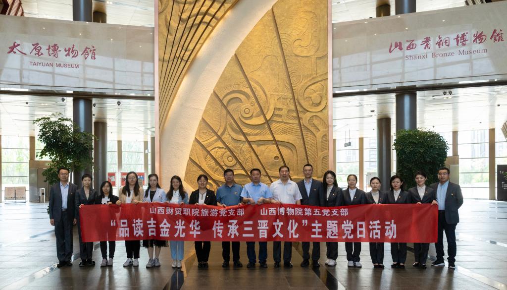 为了认真学习贯彻习近平总书记考察山西重要指示精神,深入开展学习贯彻习近平新时代中国特色社会主义思想主题教育,传承弘扬中华优秀传统文化,5月25日下午文化旅游系党总支组织党员干部前往山西博物院青铜馆开展了“品读吉金光华 传承三晋文化”主题党日,文化旅游系党总支与山西博物院第五党支部全体党员干部以及学院党委组织部部长葛建军参加了本次活动,此次联合党日活动为全国党建工作样板支部培育单位旅游党支部和山西博物院第五党支部党建共建奠定了良好基础。