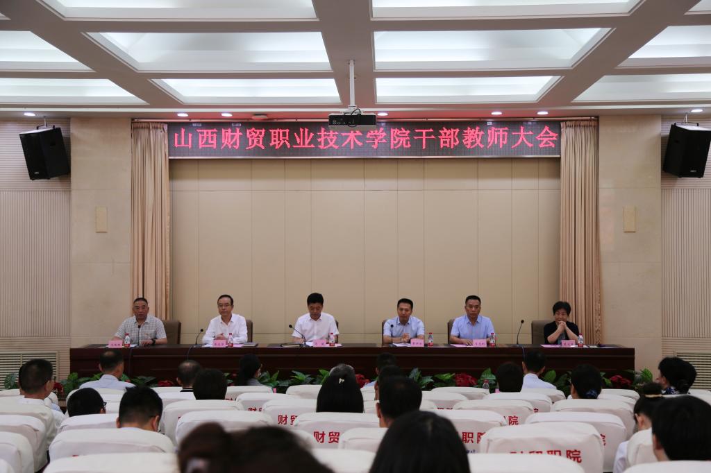 李洪云宣读了干部任免决定。乔忠华同志任山西财贸职业技术学院党委书记;弓志刚同志任山西财贸职业技术学院党委副书记、院长。因党委换届和年龄原因,冯瑞明同志不再担任山西财贸职业技术学院党委书记,段文美同志不再担任党委副书记、院长职务。