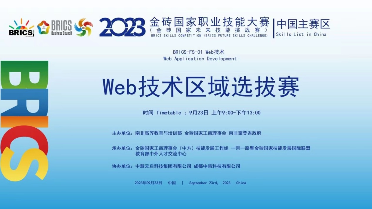 2023年9月23日,2023金砖国家职业技能大赛Web技术赛项区域选拔赛(西区)在线上成功举办。我院物联网技术系梁瑞吉同学参赛,荣获三等奖。