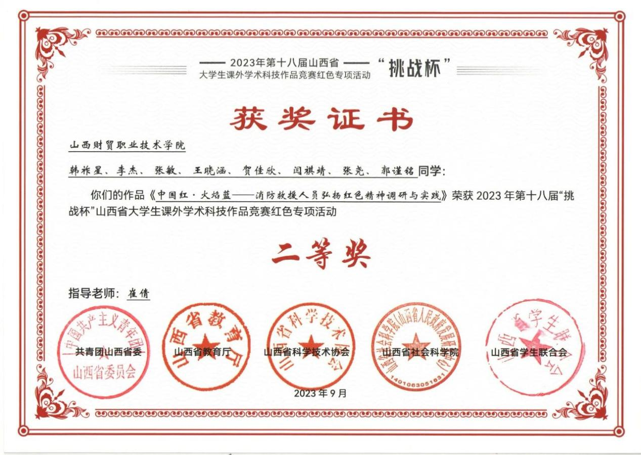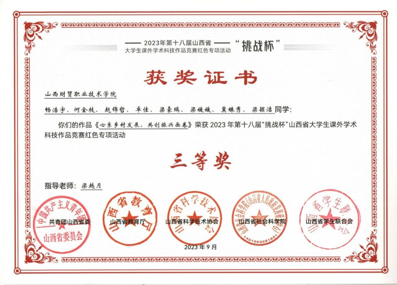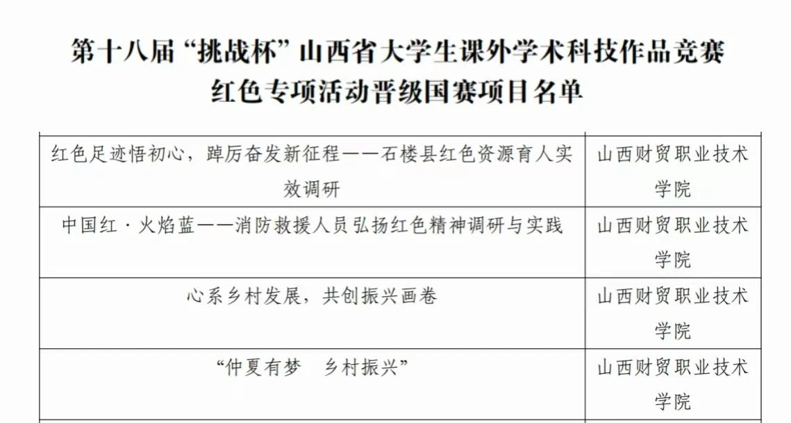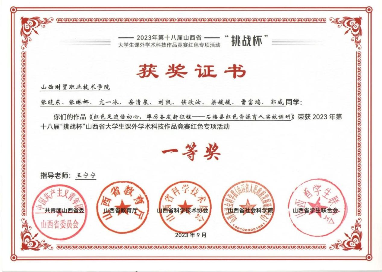 近日,第十八届“挑战杯”山西省大学生课外学术科技作品竞赛红色专项活动评选已落下帷幕,经过校级初赛、省级决赛的评审选拔,我院推送的参赛作品荣获一等奖一项,二等奖一项、三等奖两项,四件优秀作品均晋级国赛。