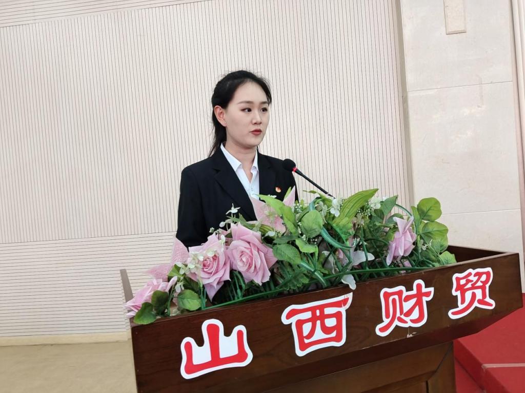 大数据与会计2205班曹馨玉同学代表全体学员表态,她承诺:一遵守规定,严明纪律。不断强化纪律意识,自觉遵守青马培训班各项规章制度,充分展示新学员队伍的良好形象。二尊重老师,团结同学。要统一行动,互相帮助,共同进步,静下心来向老师学、向书本学,向同学学,大家互相取长补短,增强学习的使命感、紧迫感和责任感。三提高认识,养成习惯。要加倍珍惜此次培训机会,养成严格规范的日常行为习惯、严谨认真的学习习惯、健康良好的生活习惯,踏实负责的工作习惯,勇于实践、敢于担当、做出表率。四努力学习,学以致用。加强政治理论学习,结合工作实际,勤于思考,深入剖析,积极讨论,反思不足,切实做到学以致用。五示范引领,服务同学。始终以全心全意为同学服务为宗旨,扎根同学,勤于交流,求真务实,实心实意帮助同学解决困难。