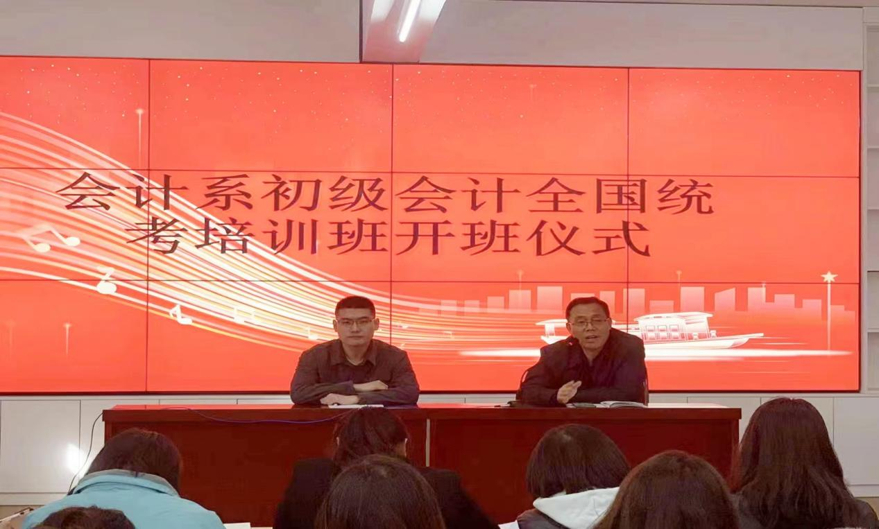 为推动会计系及学院的学风建设,会计系于2023年10月17日下午,在诚信楼一层大教室举办面向全院学生的初级会计全国统考培训班开班仪式。我系党政领导干部及相关指导教师出席会议,会计系党总支书记邢学军主持会议。此次培训班的开办旨在通过提高初级会计职称考试通过率,使同学们全面了解初级职称考试相关信息和掌握最新会计发展动态,从而提升同学们的学习风尚,为未来就业创业打下扎实的基础。