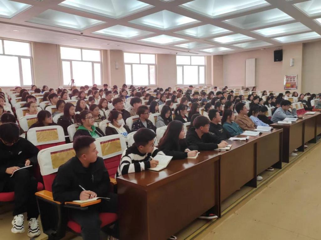 在我院扎实开展关于团员和青年主题教育之际,为深入学习贯彻习近平总书记关于青年工作的重要思想,深刻领会党的二十大、团的十九大和我院党员大会精神,发挥团组织思想引领作用,鼓励广大团干部先学一步、深学一层,带头向青年做宣讲、做解读,我院于11月1日13:00在励志楼大报告厅开展“团干部上讲台”宣讲活动,院团委负责人冯春老师为大家带来专题宣讲之《习近平新时代中国特色社会主义思想的精神实质和丰富内涵》,青马学员、团学骨干和各团支部书记共计200余人现场聆听了讲座。