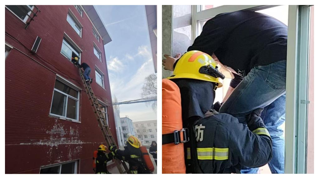 与此同时,消防官兵严阵以待,他们身手敏捷,动作娴熟,将沉重的消防水管迅速展开、连接,一气呵成。在高压水泵的强力驱动下,水龙如银蛇般喷涌而出,射向“火源”,救援云梯高高升起,官兵们紧密配合,救出“被困学生”。消防官兵们熟练的操作、敏捷的身手,赢得了师生们的阵阵惊叹与热烈掌声。