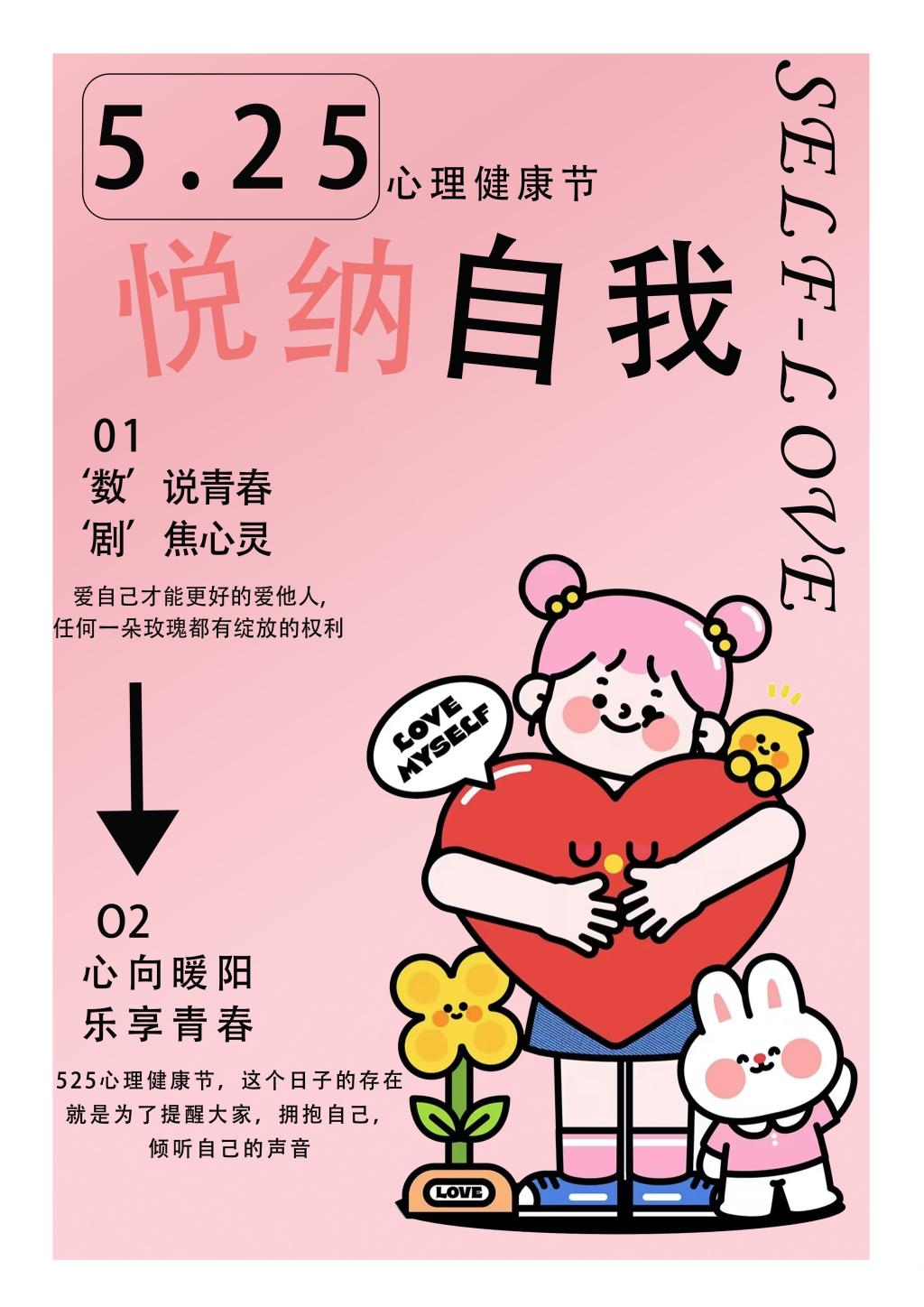 为增强学生心理健康意识,宣传心理健康知识,鼓励学生自我探索与表达,培养学生创新创造能力,我院于2025年4月30日-5月27日组织开展了“5·25我爱我”海报设计大赛,吸引了众多学生的热情参与。