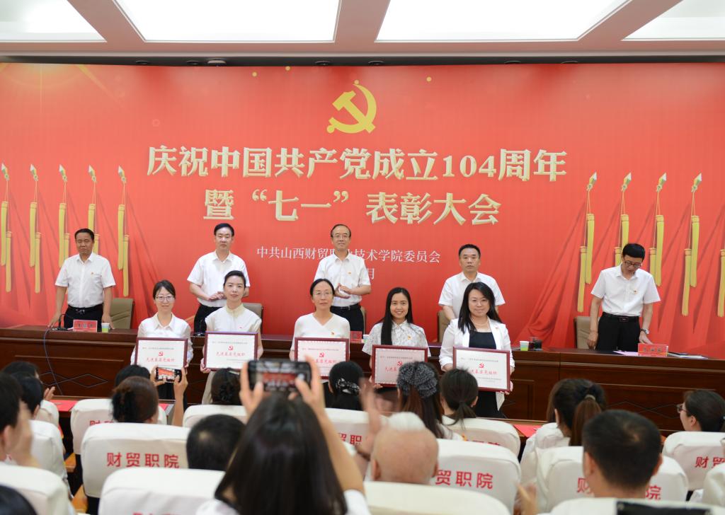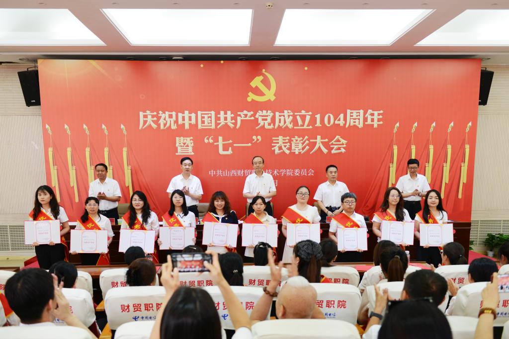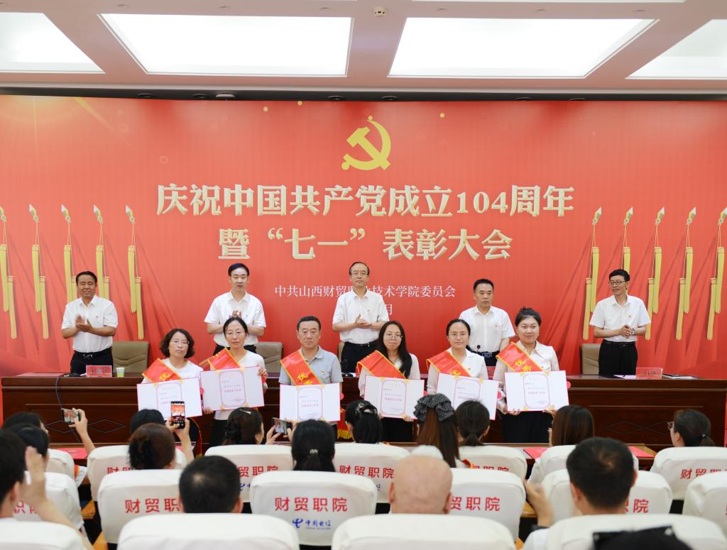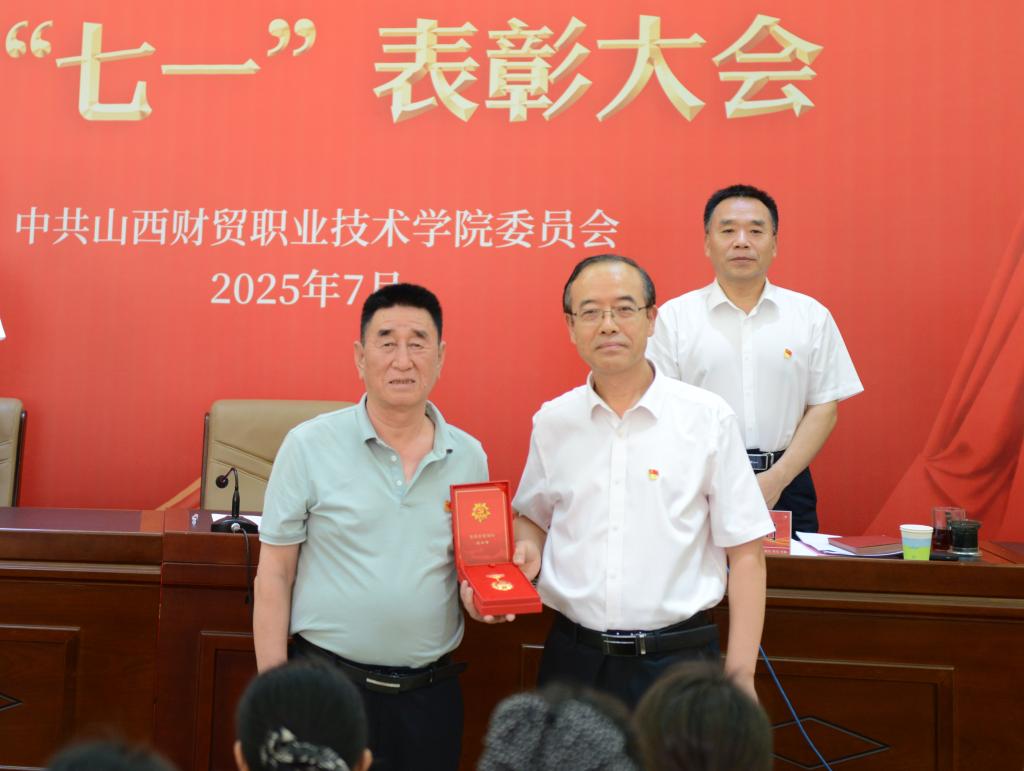 党委副书记张合义宣读《中共山西财贸职业技术学院委员会关于表彰2024-2025年度“两优一先”的决定》,表彰在学院党的建设和事业发展中涌现出来的31名优秀共产党员、6名优秀党务工作者和5个先进基层党组织。院领导为优秀个人和先进集体颁奖。党委书记乔忠华为原会计系教师杨贵成同志颁发“光荣在党50年”纪念章。