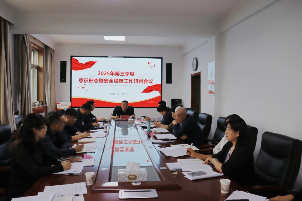 9月18日下午,学院在勤政楼三层会议室召开2025年第三季度意识形态暨安全稳定工作研判会议。党委副书记、院长弓志刚,纪委书记高宇东,副院长王振中出席会议,党委副书记张合义主持会议。