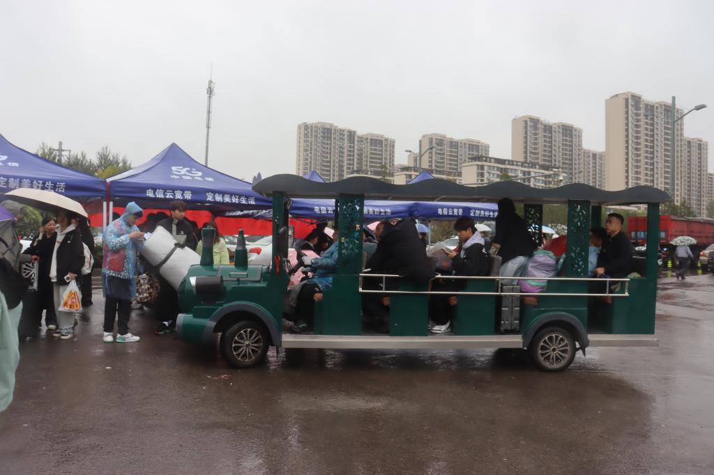 雨中有序,报到流程高效顺畅。学院高度重视雨日报到工作保障,提前制定应急预案,统一部署、周密安排筑牢服务防线。校园内,红色拱门在雨中挺立,迎新条幅随风轻扬,清晰的指示牌与温馨的防雨提示随处可见,让初来的新生倍感安心。学院北门,摆渡车整装待发,工作人员冒雨引导新生及家长有序乘车,精准送达指定站点。学生社区报到现场、砺志楼一站式学生社区服务中心大厅内,各项工作流程清晰、过程简洁、秩序井然,充分彰显出学院迎新工作的严谨有序、高效细致。