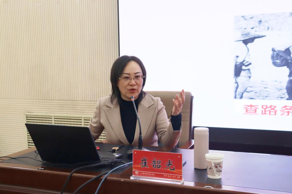 崔韶光教授以太行精神“不怕牺牲、不畏艰难,百折不挠、艰苦奋斗,万众一心、敢于胜利,英勇顽强、无私奉献”为脉络,凭借三十七年深耕红色宣讲领域的专业积淀,将丰富的历史史料与亲身采访经历、展馆工作见闻进行深度融合,为现场参会人员带来一场触及灵魂的思想洗礼。她用生动鲜活的案例,带领师生穿越时空,重温中国共产党领导八路军与根据地人民浴血奋战、共御外辱的光辉历程。从平型关大捷的振奋人心到十字岭突围的艰险卓绝,从叶成焕等年轻指挥员的英勇无畏到“太行奶娘”的无私奉献,一个个可歌可泣的英雄事迹、一幅幅感人至深的历史画卷,在她深情款款的讲述中徐徐展开,深深震撼着在场每一位师生的心灵。崔韶光教授勉励大家,要铭记革命先辈的不朽功勋,坚守红色信仰,争做有理想、敢担当、能吃苦的新时代奋斗者,让太行精神在代代传承中永葆生机。