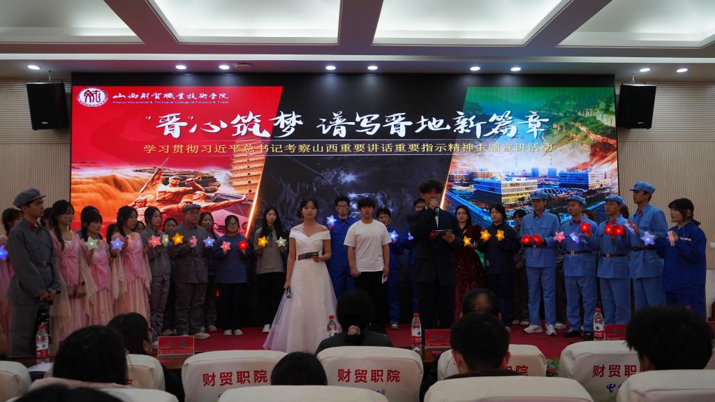 此次宣讲由院系青马学员倾情演绎,以“寻根·传承·新生”为脉络,通过情境表演、舞蹈、讲述、朗诵等多元艺术形式,生动再现了山西从烽火太行到煤海奉献,再到新时代转型的百年沧桑与壮阔征程,用青春视角诠释了三晋大地的精神密码,鲜活诠释了三晋儿女“实干兴邦” 的时代担当,引发全场师生强烈共鸣。