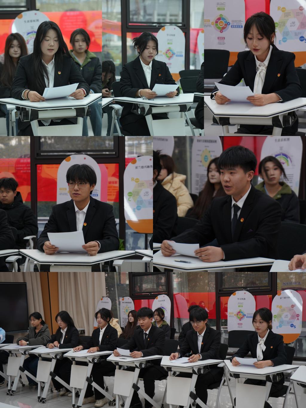 院学生会主席团成员梁宏彪、黄静怡、宋紫芊、王晶、秦焱焱依次汇报2025年以来学生会各项工作。从思想政治引领、校园文化活动开展,到志愿服务推进、权益保障落实等方面,全面展示了学生会工作取得的成效。