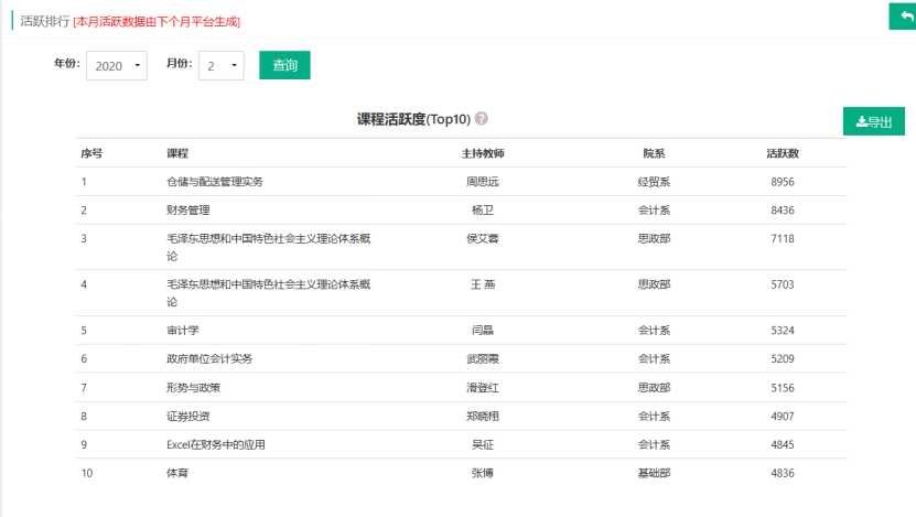 2020年2月24日—3月6日,为我院依托智慧职教云平台进行线上教学的第2、3周。同第1周相比,在平台功能使用率、课程资源利用率及课堂活跃度等方面,都有了显著的提升。总体来看,学院线上教学活动运行平稳有序。