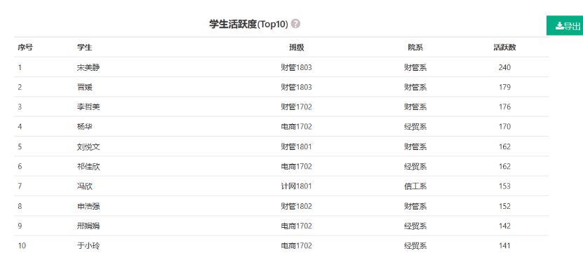 经统计,在第2、3教学周中,排名前四位的课堂教学活动分别是签到、讨论、提问和头脑风暴。与第1周相比,一是讨论、提问和头脑风暴的课堂引入次数明显增多;二是教学活动由专注于课中,延伸拓展至了课前导学和课后辅导,形成了课堂教学闭环;三是对平台功能逐渐熟悉,课程、班级、教师、学生的活跃度有所提升。