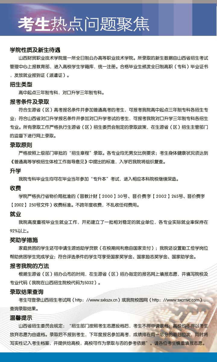 山西财贸职业技术学院2015年招生简章