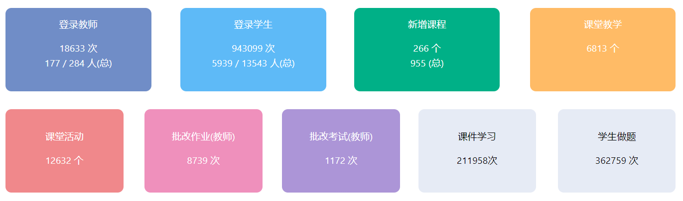 截止4月15日,学院新增线上课程266个,课堂教学共计6813次,课堂活动9138个。