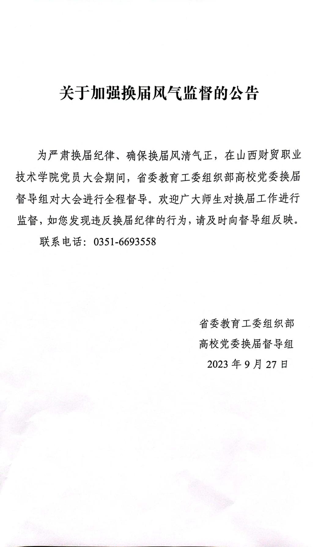 关于加强换届风气监督的公告