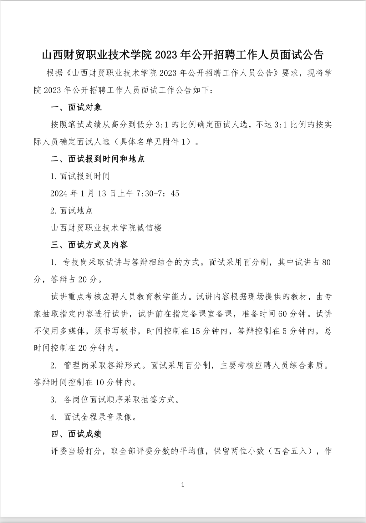 山西财贸职业技术学院2023年公开招聘工作人员面试公告
