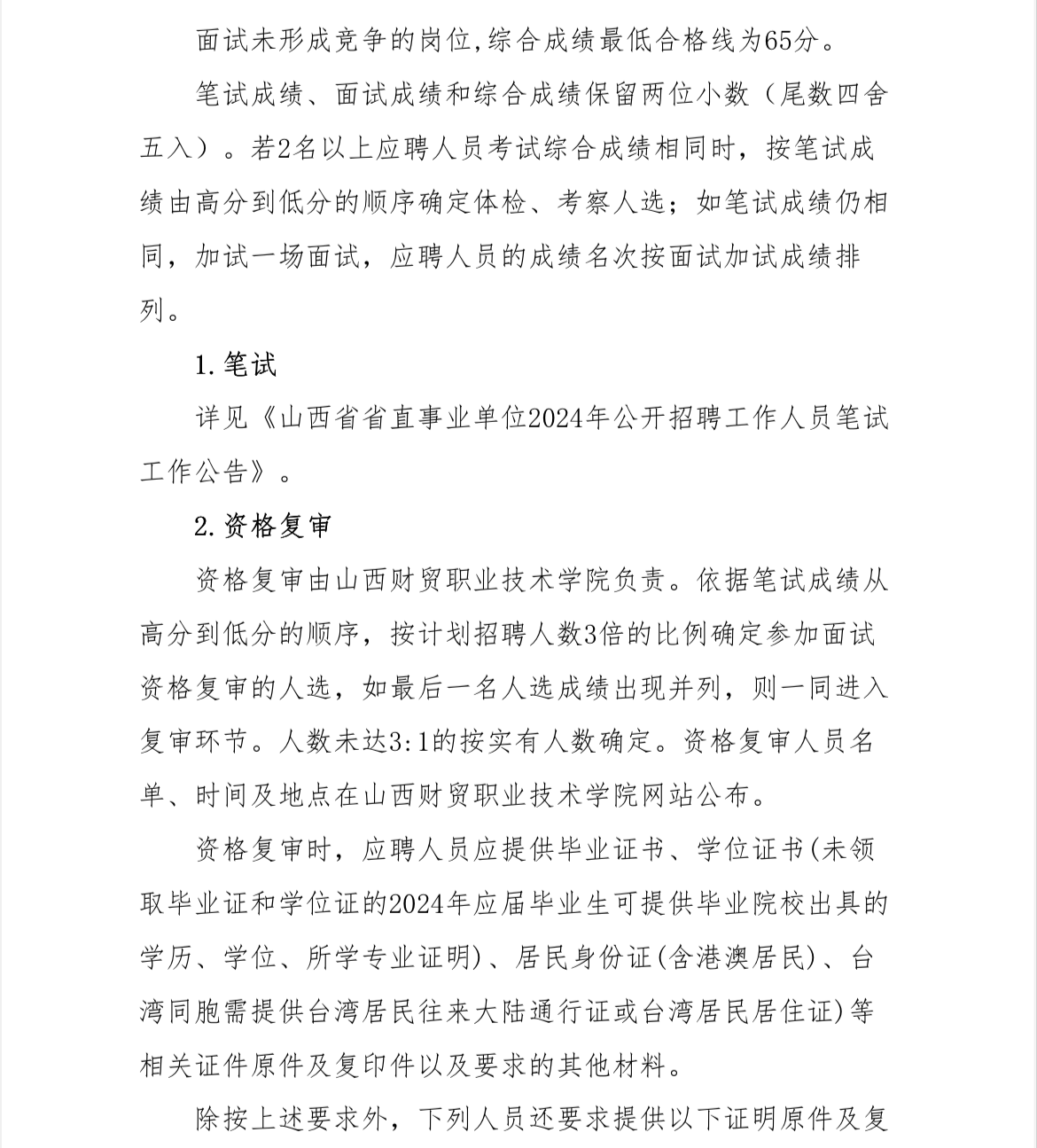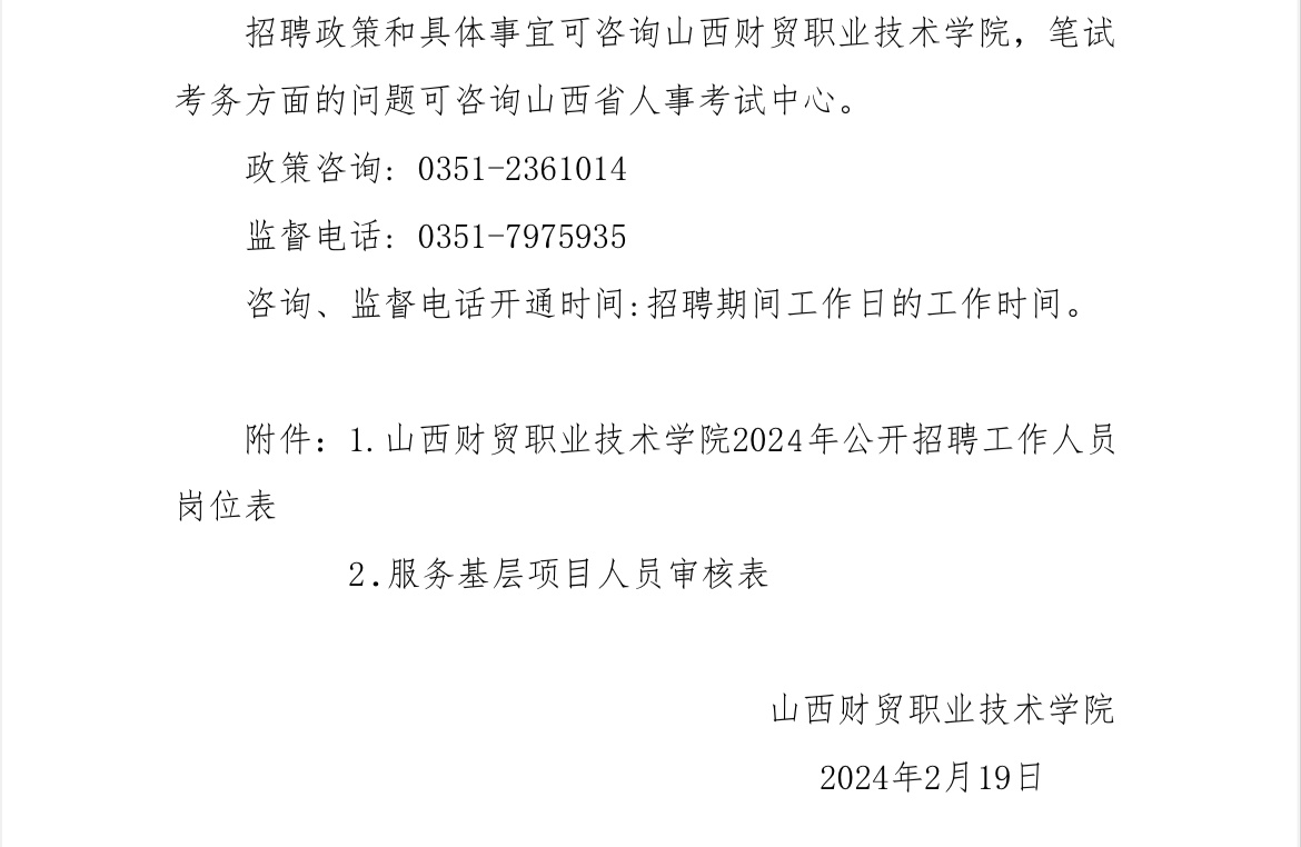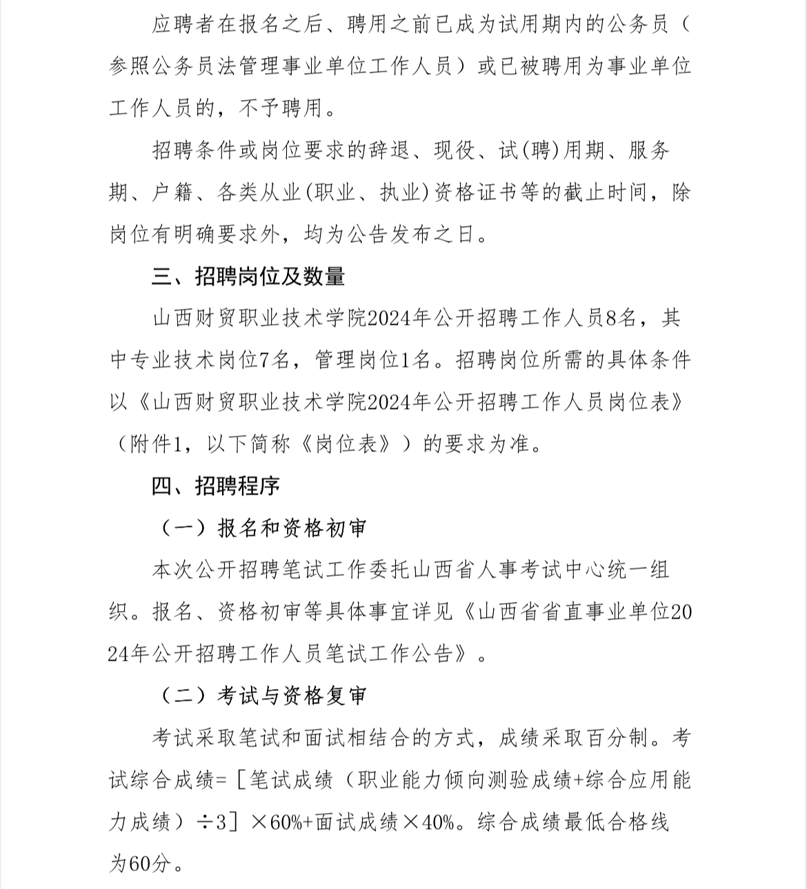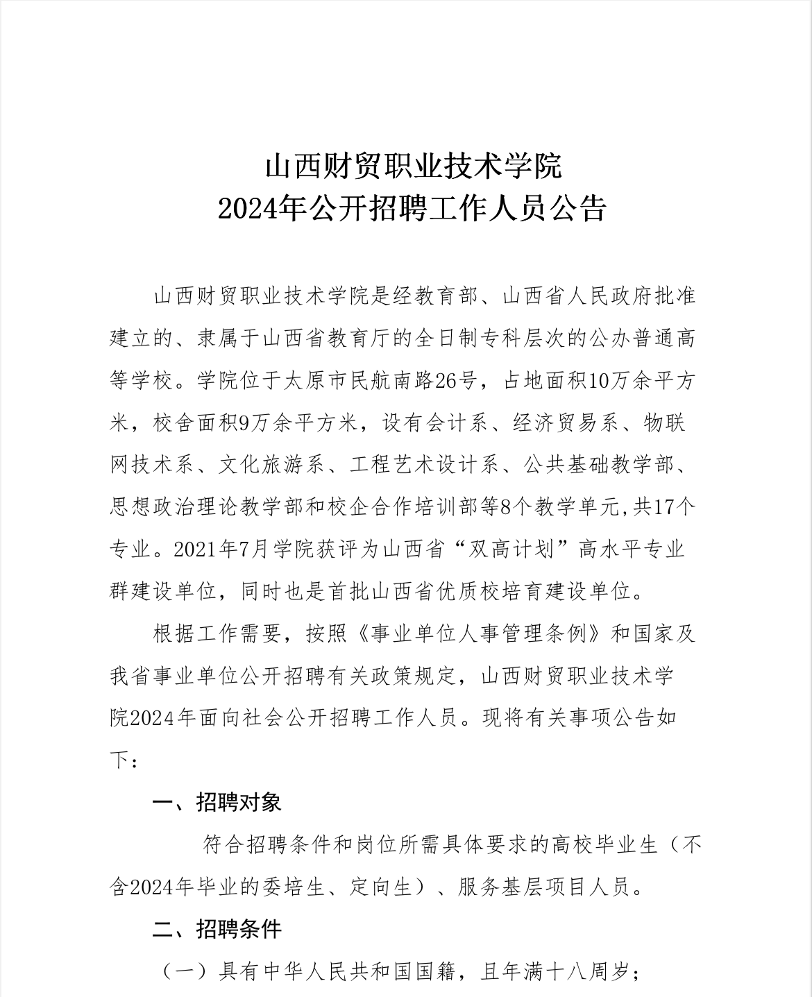 山西财贸职业技术学院2024年公开招聘工作人员公告