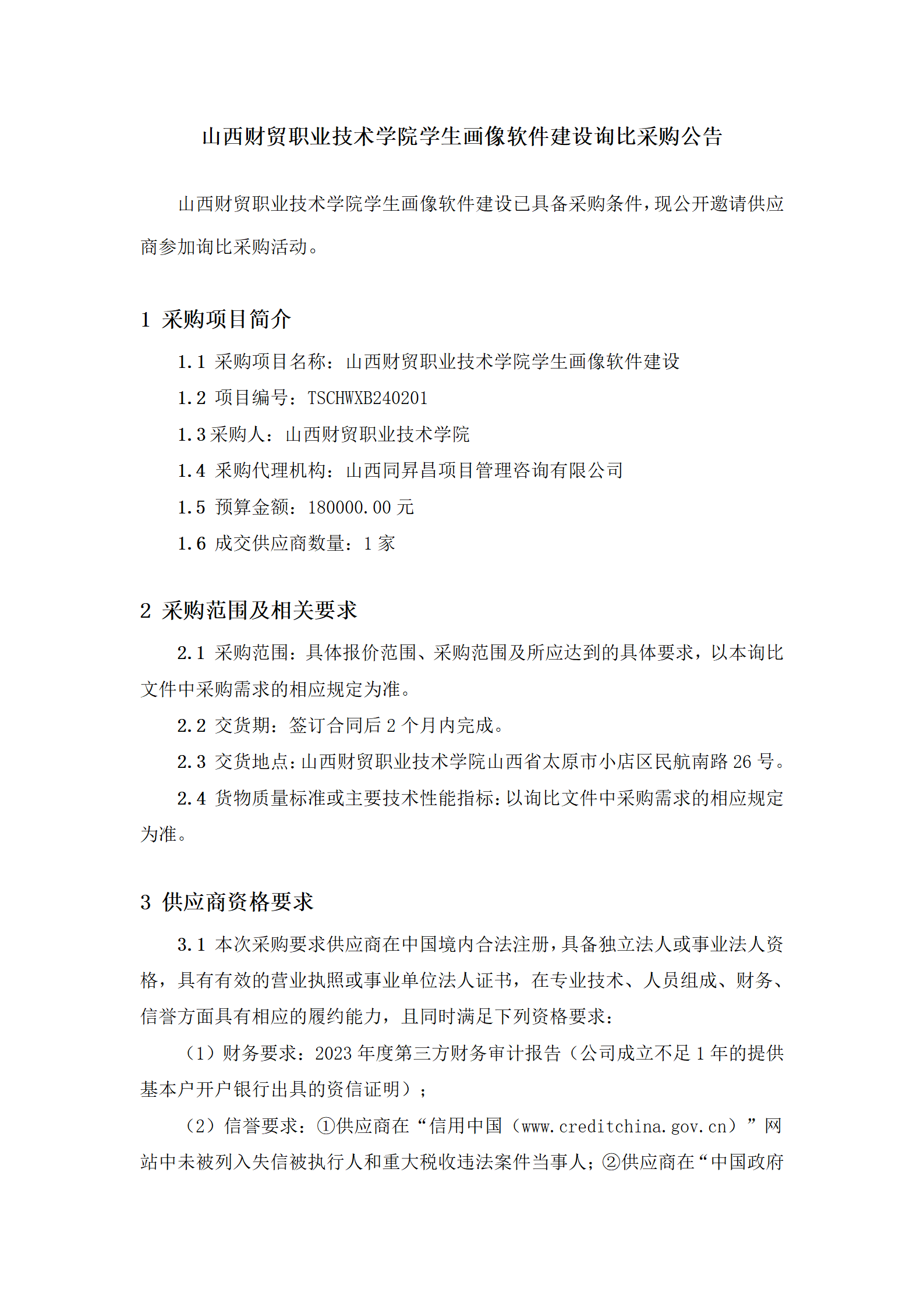 山西财贸职业技术学院学生画像软件建设询比采购公告