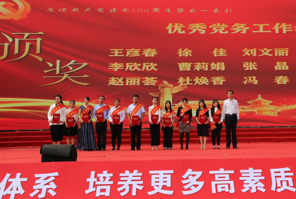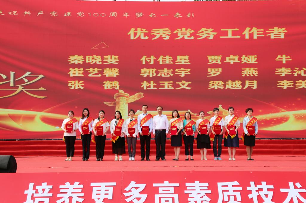 为庆祝建党一百周年,将党史学习教育进一步推向深入,回顾党的光辉历史,歌颂党的丰功伟绩,充分挖掘和展示学院基层党组织和广大党员在学院发展中所取得的工作业绩和模范带头作用,5月25日下午,我院在体育场隆重举行庆祝建党一百周年暨“七一”表彰大会。省委党史学习教育第二十巡回指导组组长刘玉平、副组长李鑫、联络员崔彤、成员石辰瑞、杨婷出席本次活动。学院领导班子成员、全体师生参加了大会。