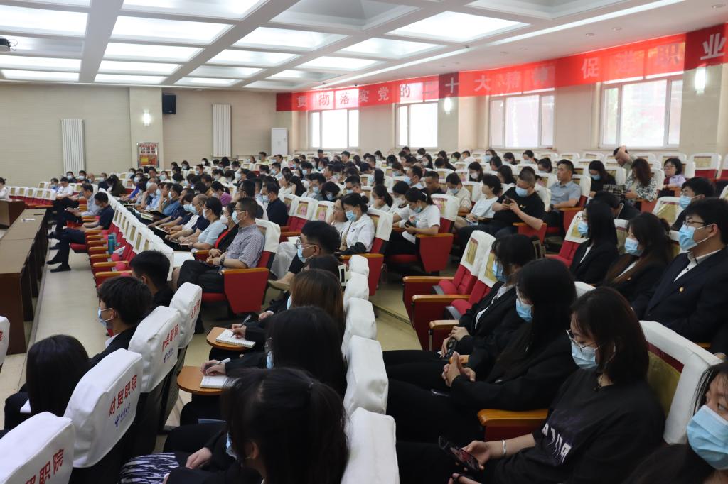 为持续推动学习贯彻习近平新时代中国特色社会主义思想走深走实,根据学院党委统一安排,由学院党委副书记、院长段文美教授主讲的“坚持学思用贯通 做到知信行合一 为奋进新征程凝心聚力”主题教育宣讲活动于6月7日下午2:30在学院砺志楼大报告厅如期举行。宣讲会由组织部部长葛建军主持,全体党员、干部及学生代表参加了此次主题教育宣讲活动。