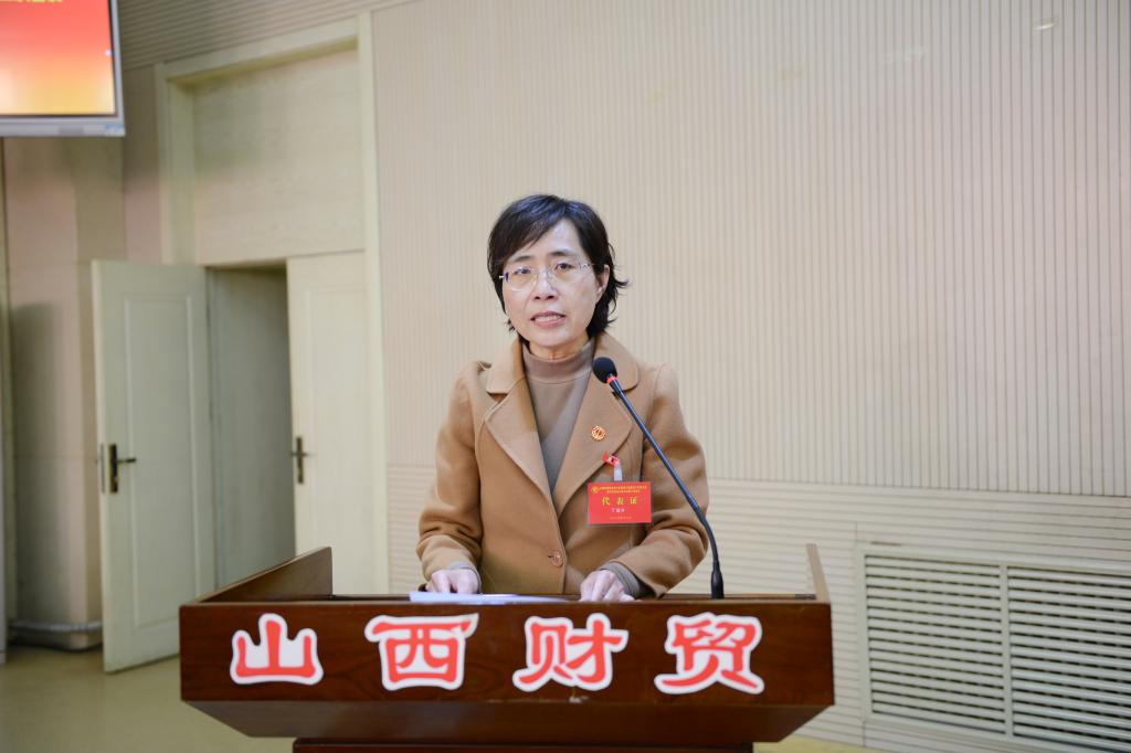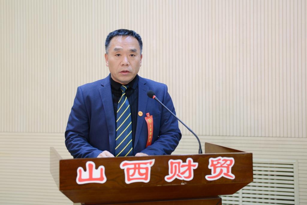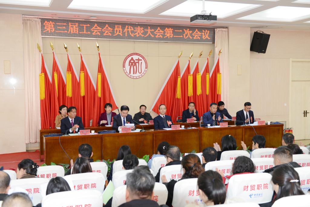 工会主席丁冠卬作《围绕中心服务大局凝心聚力助推学院高质量发展》的工会工作报告。
