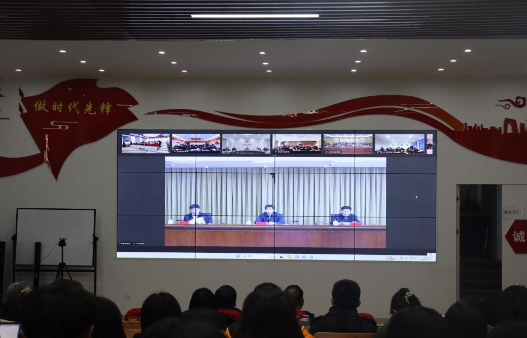 山西财贸职业技术学院在博学楼西阶梯设分会场参加视频会议,学院党委书记乔忠华、院长弓志刚、党委副书记张合义,学生处全体成员、心理咨询中心(心理健康课)专兼职教师、各系党总支书记及分管学生工作的副书记(副主任)、全体专兼职辅导员参加了此次会议。
