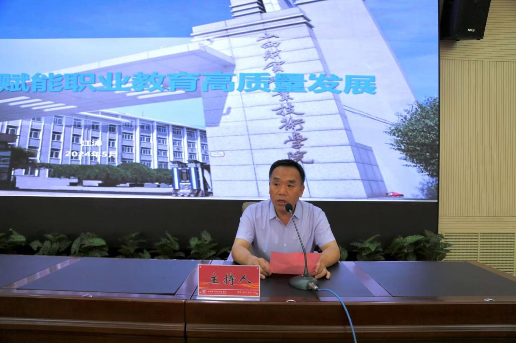 弓志刚在主持讲话中强调,一是学院要紧跟数智时代发展趋势,增强职业教育的适应性。以产教融合为核心,加强与数智化企业合作,形成新型应用型人才培养的共育体系,打造适应数智时代的师资队伍、课程设计、教学内容,形成有效的培养机制。二是教师要关注职业教育数智化转型,创新职业教育新思维。作为教育工作者要立足工作岗位深入思考,从数智思维转变做起,将新思维融入日常教育教学全过程,推动数智教育教学改革创新发展。三是学生要了解数智化转型的最新动态,主动求变适应社会。作为新时代的大学生要扩大知识视野,了解社会发展动态,转变学习方式,努力成为适应社会发展的大国工匠、能工巧匠。