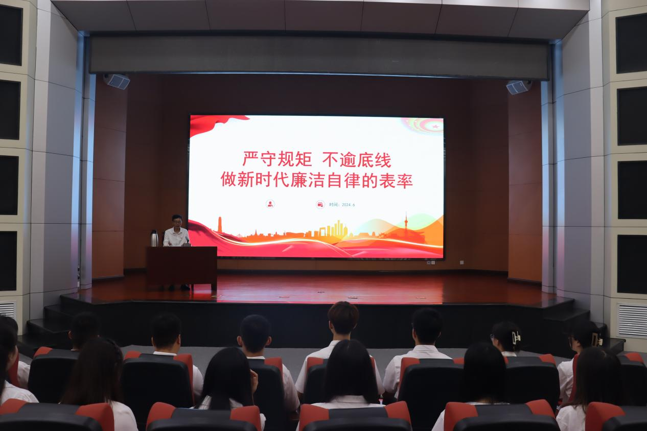 高宇东以《严守规矩不逾底线做新时代廉洁自律的表率》为题,结合党史和党的二十大精神,围绕全面从严治党、清廉学校建设,围绕学习“新条例”,不忘初心守底线,从为什么学、学什么和怎么学作了深刻解读。他指出要深刻认识党纪学习教育的重要意义和目标要求,切实把思想和行动统一到党中央的决策部署上来;要抓住学习重点,在学习贯彻习近平总书记关于党纪学习教育的重要讲话和重要指示精神和学习贯彻《中国共产党纪律处分条例》上下功夫;要坚持集中性教育和经常性教育紧密结合起来,坚持多种学习形式有机结合,坚持把学习教育和正在做的事结合起来,着力将学习教育成果转化为推动学院高质量发展的实际成效。