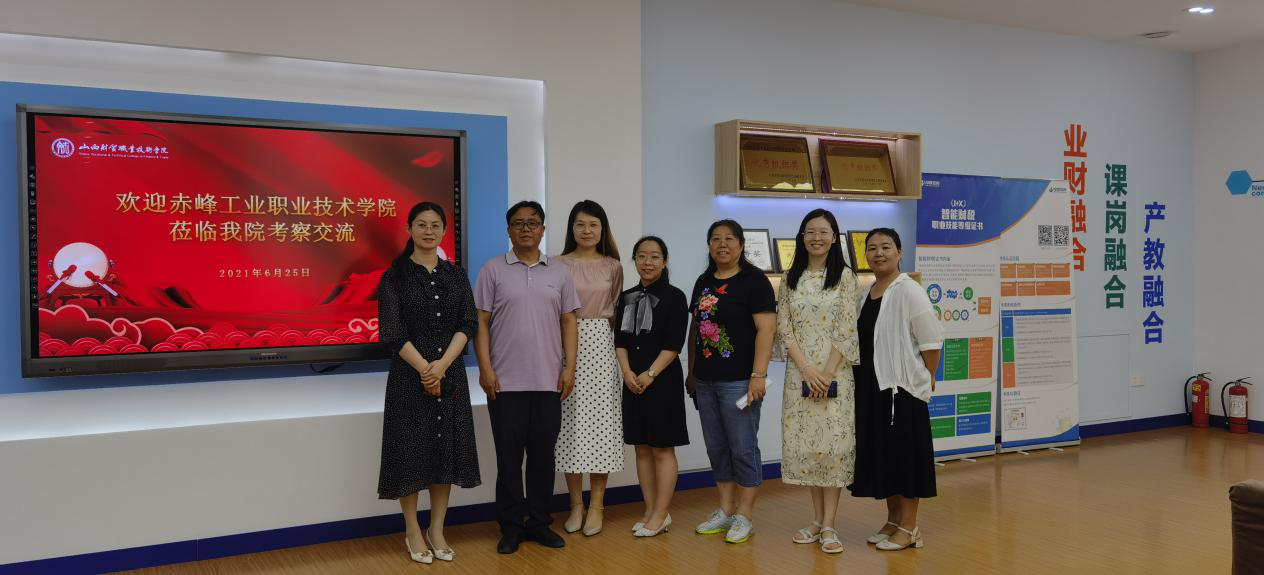 2021年06月25日上午,赤峰工业职业技术学院经济管理系主任郭晓慧一行四人到我院考察调研,会计系主任王振中、副主任杨卫、副主任牛艳及相关会计系工作人员接待了郭晓慧主任一行。