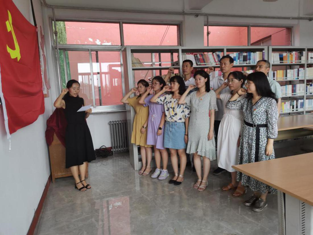 会议第三项,全体党员面对鲜红的党旗重温了《入党誓词》。