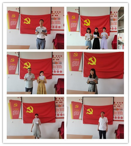 会议第二项,团学党支部开展了“颂歌献给党”红歌传唱和经典诗词朗读活动。活动中,同志们激情洋溢、饱含深情地朗诵了《念奴娇·追思焦裕禄》、《在鲜红的党旗下》、《党的赞歌》、《忆秦娥·娄山关》、《水调歌头·重上井冈山》,刘宇雷同志和大家深情演唱了《我和我的祖国》。大家在诗歌中回顾了党的光辉历史,歌颂了党的丰功伟绩。