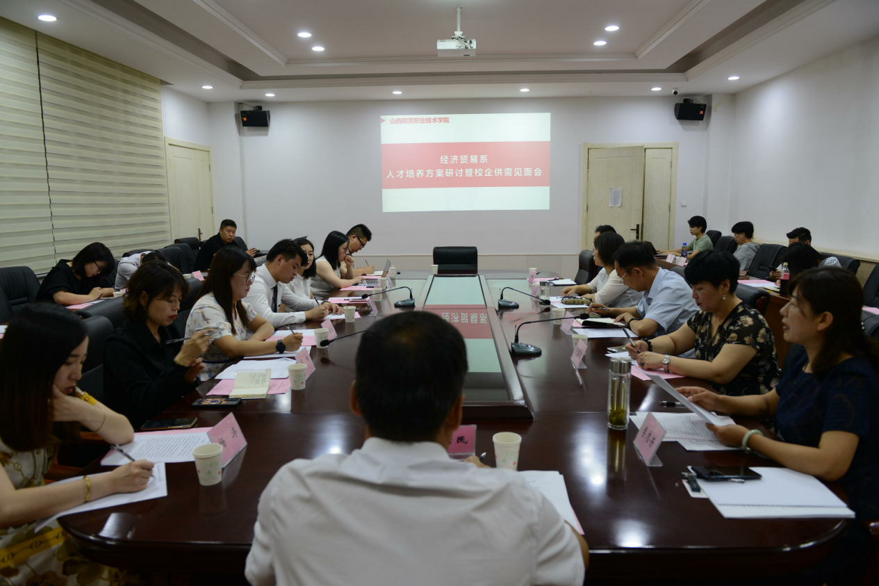7月2日,经济贸易系举办人才培养方案研讨暨校企供需见面,会议邀请政协委员山西佰强祺悦商贸有限公司董事长芦爱玲、山西时尖科技有限公司经理高梅、山西枥志圆文化传播有限公司总经理义靓、新道科技股份有限公司数字营销总监陈曦、山西瑞吉中通物流有限公司人事经理李媛媛、山西永辉超市有限公司人力资源经理刘亚楠、山西九鼎方正科技股份有限公司部门经理杨涛等来自10家企业的17位校外行业、企业专家参加了研讨会,兄弟院校山西财税专科学校信息学院、商学院同行给予了大力支持。学院校企合作培训部、我系全体教师参加了研讨,系主任李志芳主持会议。