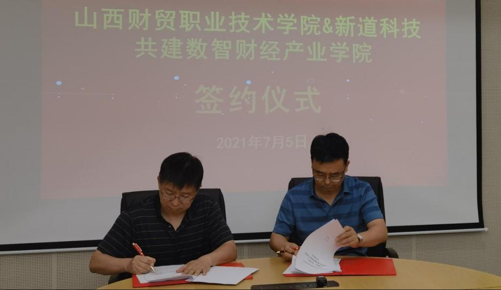 随后,在全体与会人员的共同见证下,校企双方现场签订了《共建山西财贸职业学院数智财经产业学院合作协议书》并共同为数智财经产业学院揭牌!