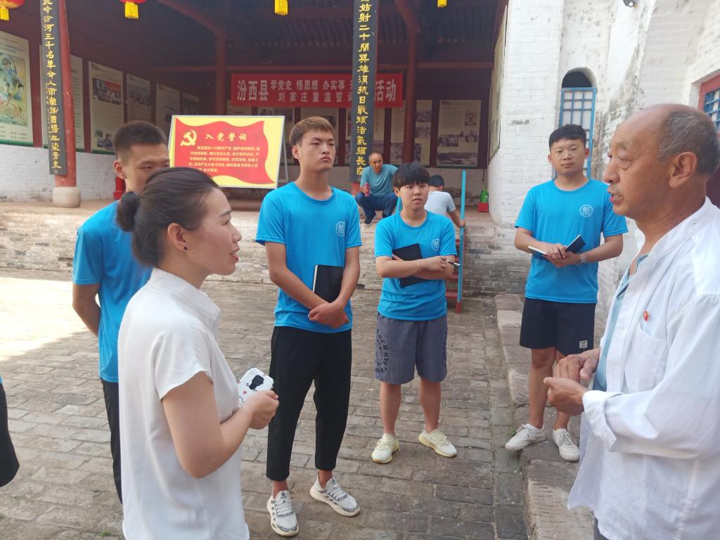 活动期间,实践队还参观了刘家庄二十闾地下党革命活动旧址,追寻红色历史的点滴足迹和伟大不屈的精神力量。当地老党员、原刘家庄村支书贾佳霖为队员们详细讲解了当时地下党的活动情况,队员们从中感受到了革命先烈克服困难、不怕牺牲的精神,深受感动,表示一定向革命先烈学习,将革命先烈优秀精神品质内化于心,外化于行,更加严格要求自己,不断提升自身素养。