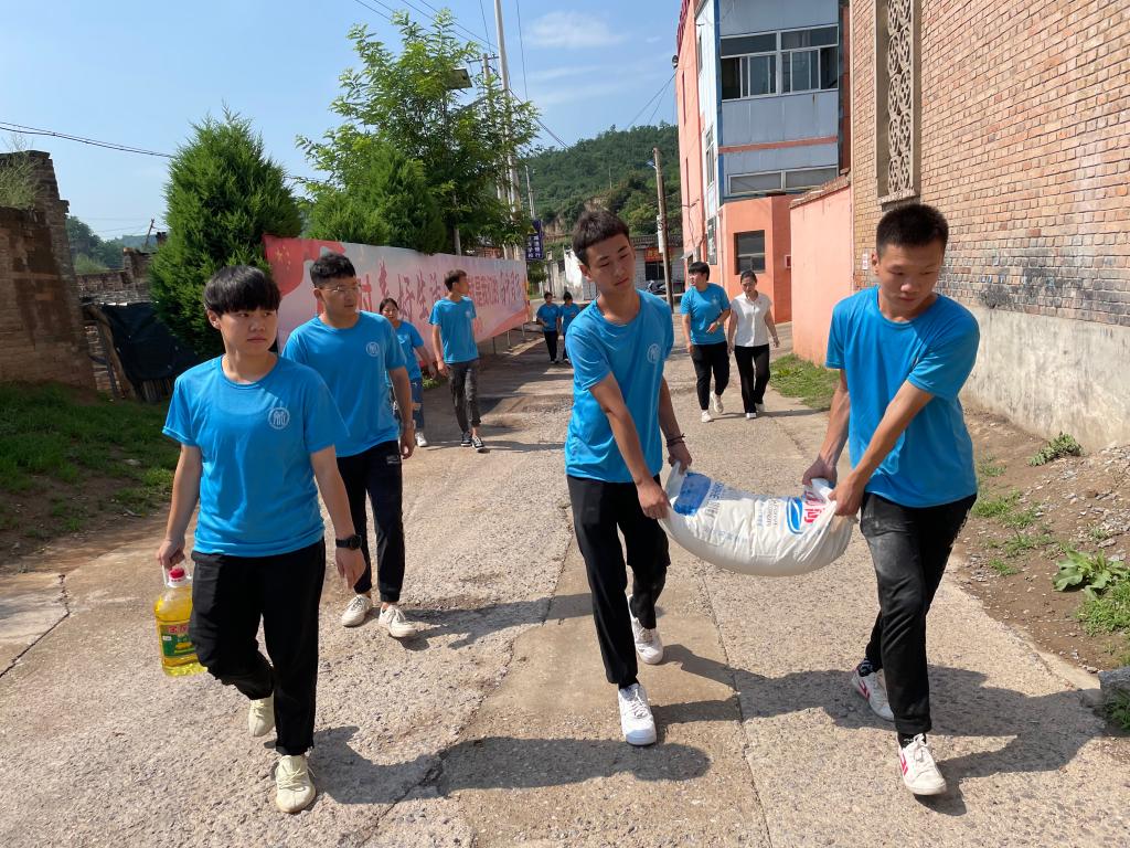 经过几天的走访和进一步的深入了解,实践队员们深受触动,自愿出钱买了一些面粉、食用油等生活用品,走访慰问了三位老党员和两位因病、因残导致生活清贫的群众。