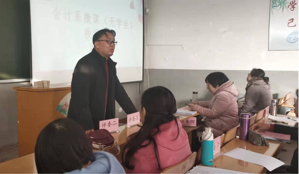 会计系主任王振中对会计系教师近一年的努力及全系上下干事、创业的热情和精神表示肯定。我系教师通过参与教学能力比赛、学生技能大赛、精品在线开放课程建设、教材建设等项目,更新了教学理念和教学方法,创新了课堂教学模式,建设了优质教学资源,提升了教师队伍建设及人才培养质量。特别是赵淑琪、闫华、高春莲、杨卫等老教师在工作过程中,老骥伏枥,持续为我院发展发光、发热,并坚持“传帮带”,培养了一批优秀的青年教师。本次微课大赛,彰显了学院培养“双师型”人才,完善“产教融合”人才培养模式的要求,对加强师资队伍建设,全面提高教师技能起到了积极作用,激发了教师在新形势下对教学模式的思考与探索。