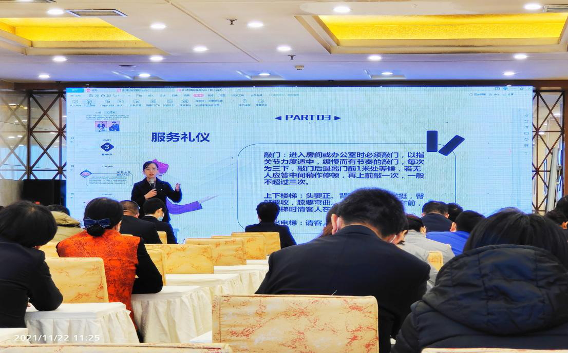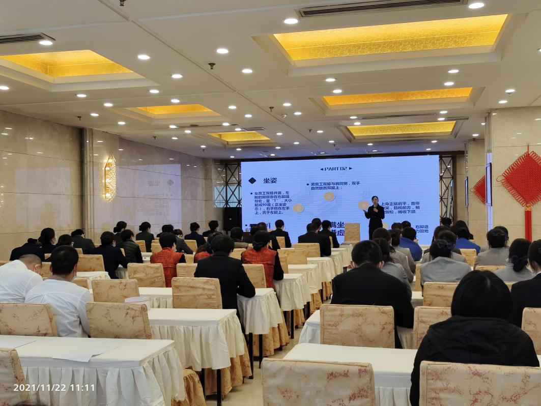 文化旅游系教师李宋丹结合实际工作礼仪教学案例,与员工进行互动,并通过示范讲解,帮助员工更好地理解和掌握培训内容。山西人大会议中心共有97名员工参加本次培训,经过文化旅游系教师李宋丹的认真讲解,员工们在日常商务礼仪场合中常有的困惑得到了解答,常犯的错误得到了纠正,同时对商务礼仪的基本规范、实际运用和重要性有了更深刻的体会。