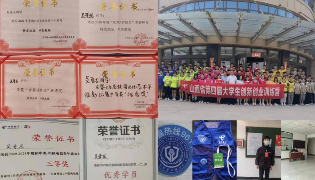 吴晋龙,男,汉族,中共预备党员,经济贸易系营销1901班团支部组织委员。入学以来,他认真学习,关注时政,严格要求自己,遵守学校的各项规章制度,认真完成学业,积极参加学院、系部组织的公益活动。荣获系赛“永远跟党走”主题演讲三等奖、创意书签比赛二等奖、“放飞足球梦”校赛二等奖、安全教育主题征文二等奖、世界读书日优秀奖、“战役有我 青春如歌”校园歌手大赛三等奖,“四史”知识竞赛一等奖、2020年暑期社会实践优秀个人。曾被评为“优秀共青团员”。疫情期间,志愿加入防控新冠肺炎疫情志愿者,承担村镇的疫情知识宣传防护工作。