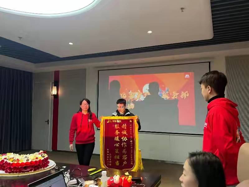 最后,企业为我院颁发了锦旗,并为优秀毕业生颁发荣誉证书。物管2001班郑依蓉、孟英明、马晋东被评为关单小能手;张浩然、贺钰茜、牛婧被评为满意之星;宁晓波、邢阳锋、杨毅被评为绩效之王。