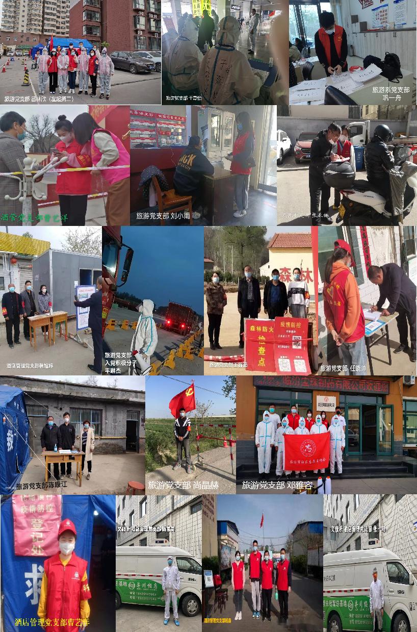 疫情就是命令,防控就是责任!文化旅游系党总支迅速统一思想、组织部署,并通过广泛宣传凝聚抗疫力量,引导广大党员充分发挥先锋模范带头作用,在做好本职工作的基础上积极参与到疫情防控第一线,践行初心使命,成效显著。