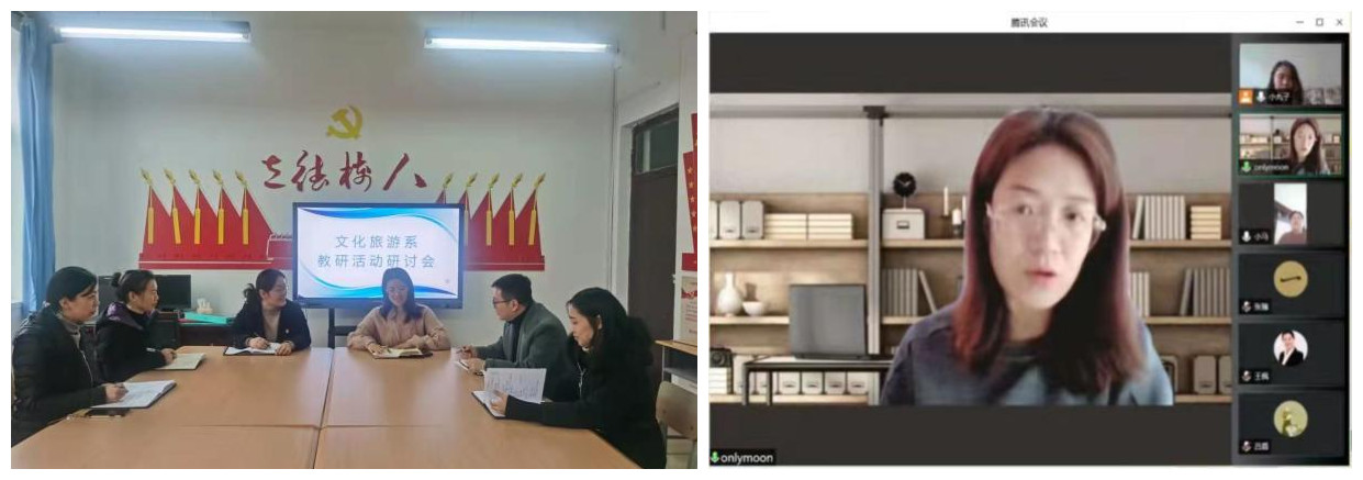二是开展教学研讨活动破解教学难题。为了做好线上教学工作,文化旅游系全体教师每周定期召开教研会议,围绕学生学情分析、教学手段应用、课程思政元素渗透、线上教学要求、教学活动开展、学生学习管理等线上教学过程中的关键问题、现实问题、难点问题展开讨论,对于统一教师思想、解决实际问题、拓宽线上教学思路起到了很好的作用。