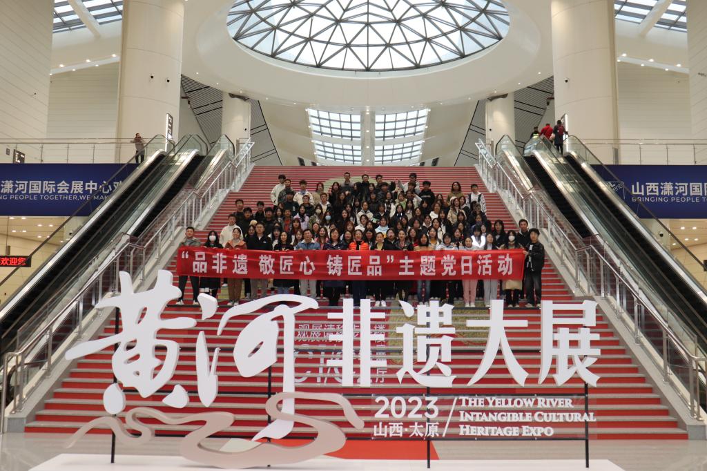 为深入学习贯彻落实习近平文化思想、习近平总书记关于黄河流域生态保护和高质量发展重要论述,感悟优秀传统文化魅力,了解非物质文化遗产保护传承弘扬工作,2023年11月10日,文化旅游系组织全体教师党员、入党积极分子、2022级旅游管理、智慧旅游专业全体师生共计100余人,赴山西潇河国际会展中心组织开展“品非遗 敬匠心 铸匠品”主题党日暨专业实践活动。