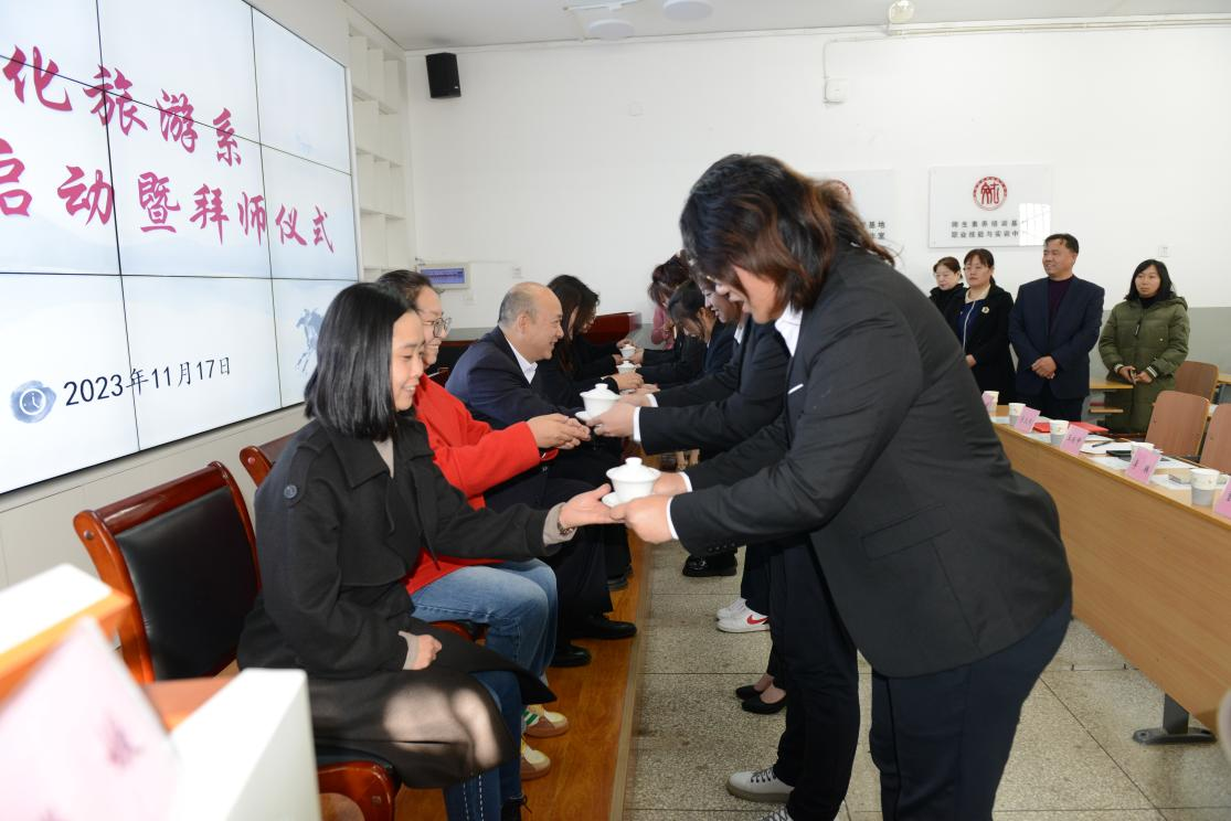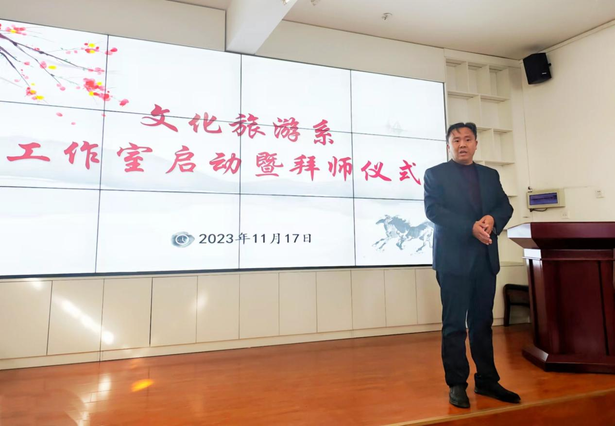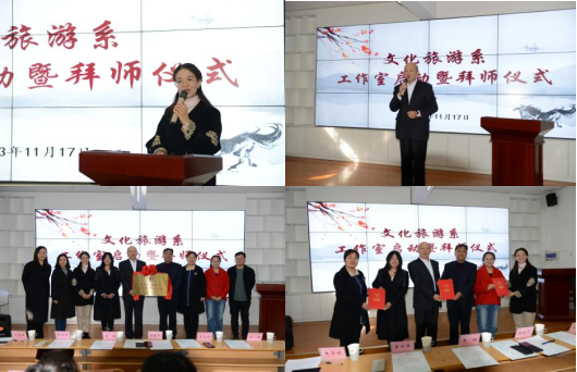 2023年11月17日,文化旅游系举办了“工作室启动暨拜师仪式”。山西财贸职业技术学院副院长王振中,山西文华国际智能旅行有限公司、山西行而知研学教育科技有限公司董事长李瑛,山西行而知研学教育科技有限公司总经理申小丽,山西向前行研学文化传媒有限公司总经理董丽隽,山西友谊国际旅行社计调部经理李文燕,文化旅游系党总支书记马娟、系主任王雪娟、系全体教师及旅游管理专业2202级学生参加了此次活动。仪式由系分团委书记张媛主持。