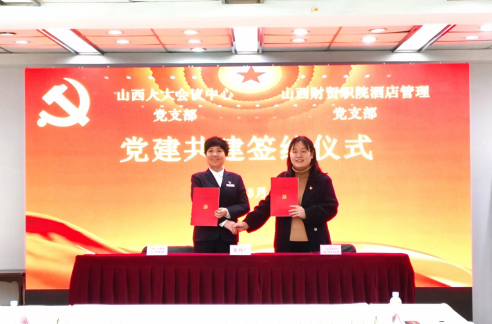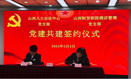 活动第一项,文化旅游系酒店管理党支部与山西人大会议中心党支部举行党建共建签约仪式。