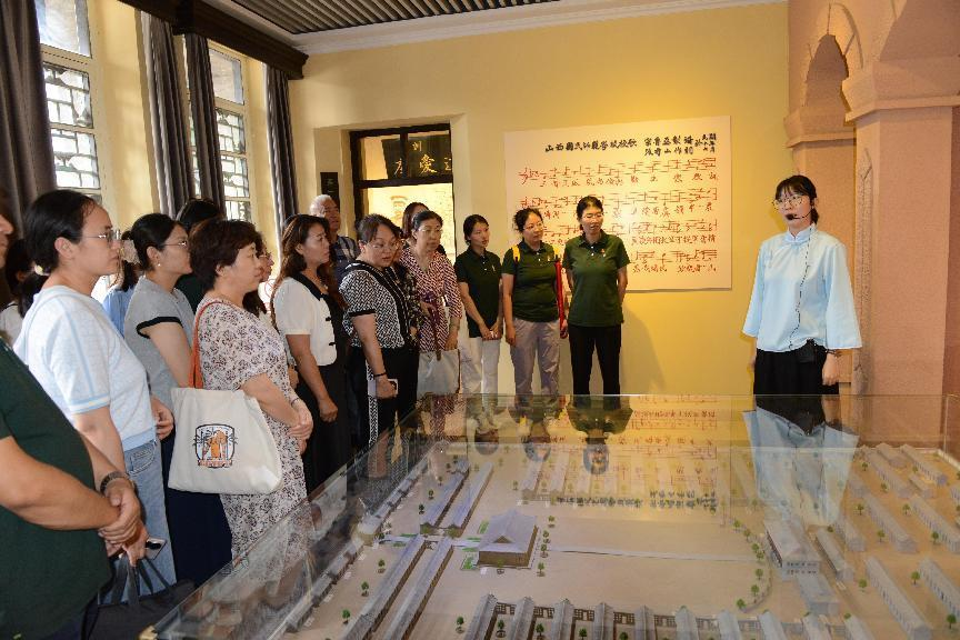 老师们去到旧址内的原图书馆,坐在先烈们曾经学习的地方,阅读了山西地区抗战故事的书籍,情景化地体悟红色精神,再现抗战时期师范生们的学习场景。