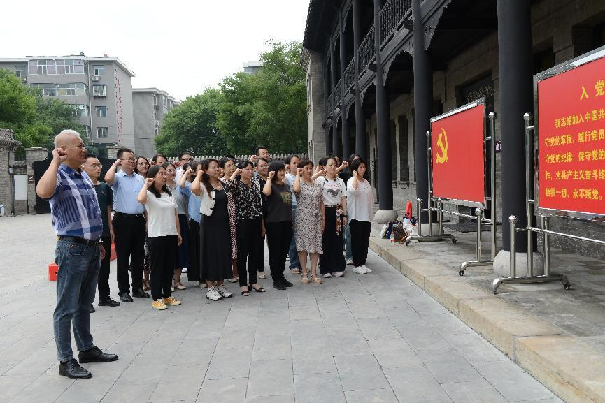 在纪念馆前,大家庄重地重温了入党誓词,感悟革命伟力。大家高举右拳,面向党旗宣誓,铿锵有力的誓词,庄严坚定的承诺,表达了永远跟党走,奋进新征程的决心和信心。
