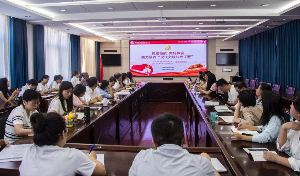 8月27日下午,我院文化旅游系旅游党支部受邀参加山西国际商务职业学院教学第一、第二,行政第二党支部主题党日活动,就支部党建品牌建设专题进行交流探讨,支部书记吕林欣代表旅游党支部作“全国党建工作样板支部建设工作交流”主题报告。